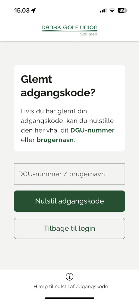 Du skal have et aktivt DGU-nummer og adgangskode til GolfBox for at kunne bruge appen.