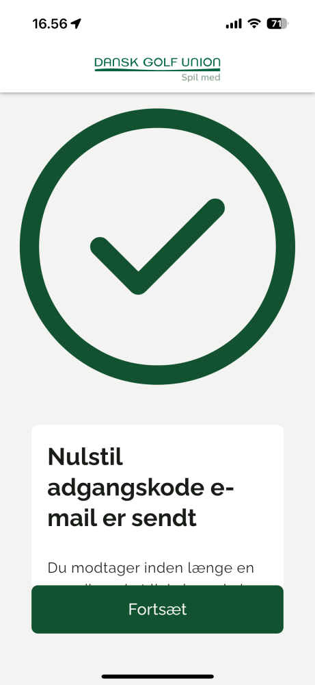 Når du har sendt dit DGU-nummer ind vil du få tilsendt en mail til den adresse som er registreret på nummeret i GolfBox. Hvis ikke DGU-nummeret genkendes vil du få besked på det.