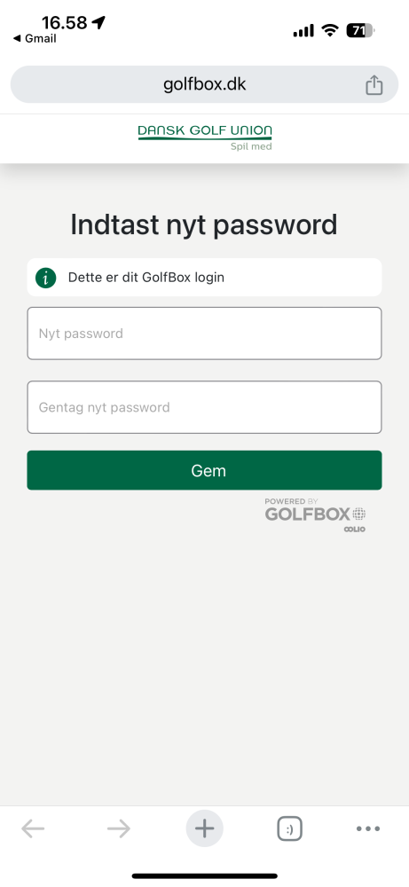 Når du klikker på linket i den tilsendte mail vil du kunne indtaste en ny adgangskode til dit DGU-login, som du efterfølgende kan logge ind med i appen.